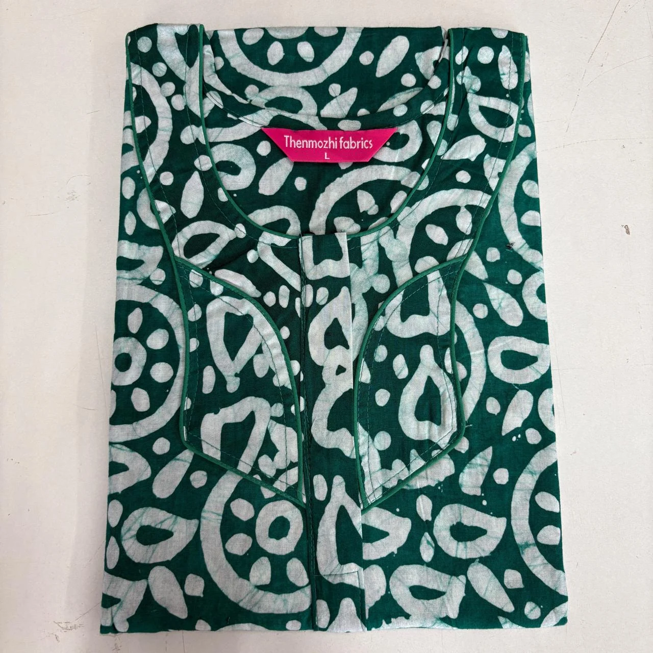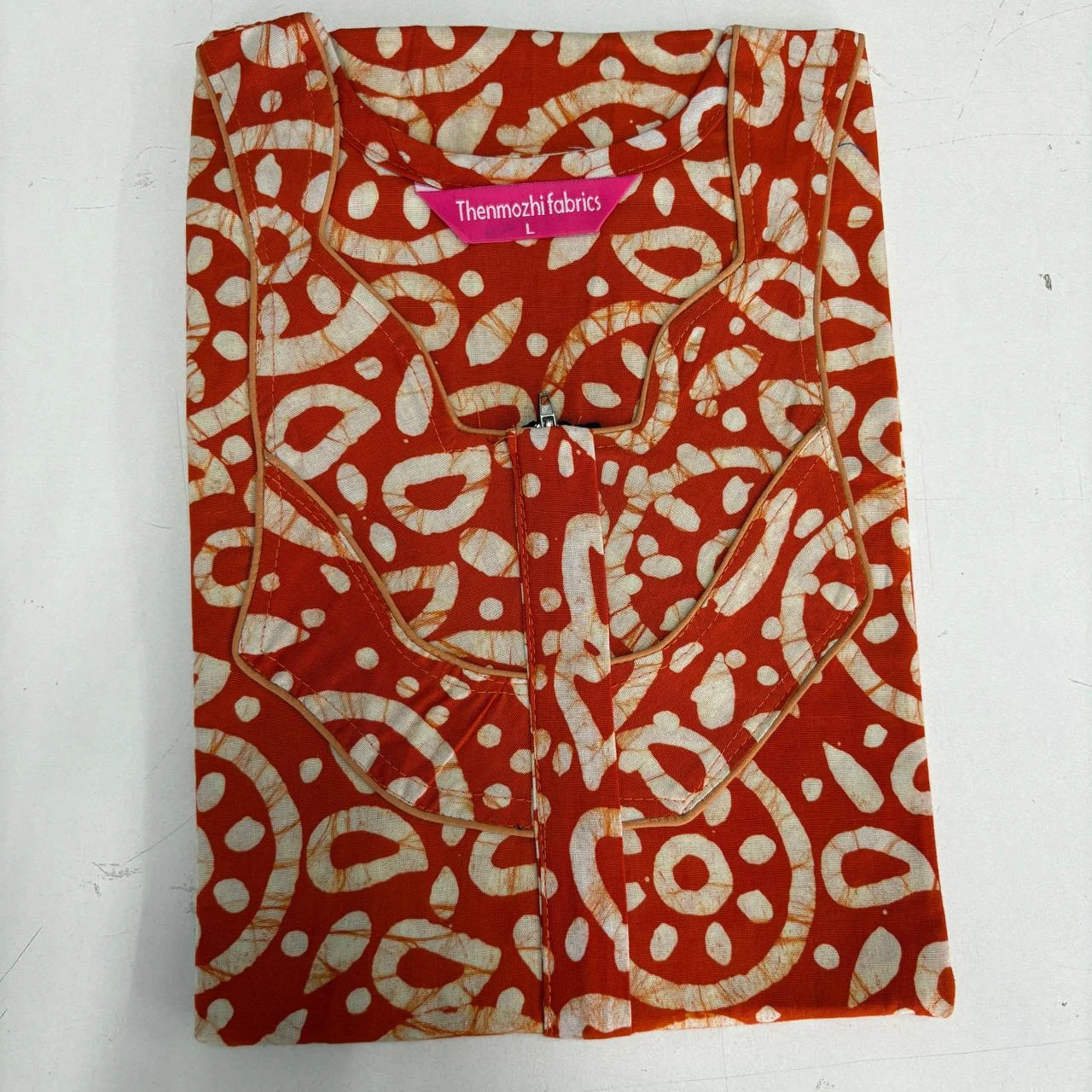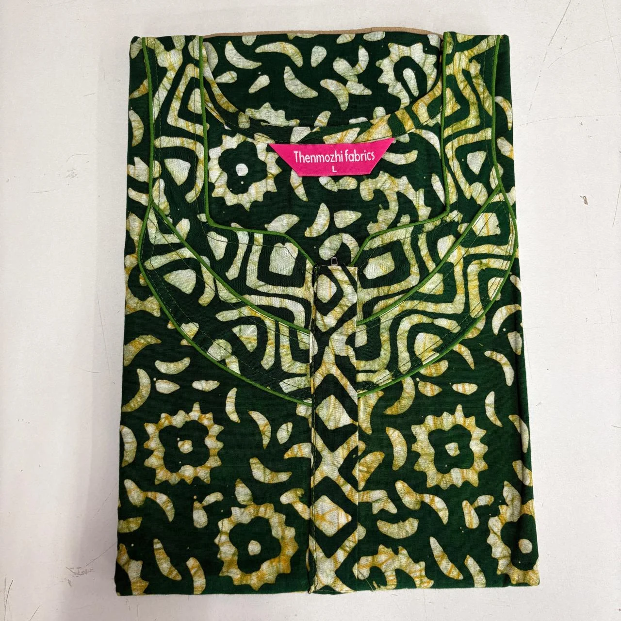 Experience comfort and style with our Batik Nighty (Size L) — handcrafted from 100% soft cotton with traditional batik prints. Designed with a front zipper, relaxed fit, and smooth piping finish. Perfect for everyday home wear, summer nights, and gifting. Available in 12 elegant printed designs by Thenmozhi Fabrics.