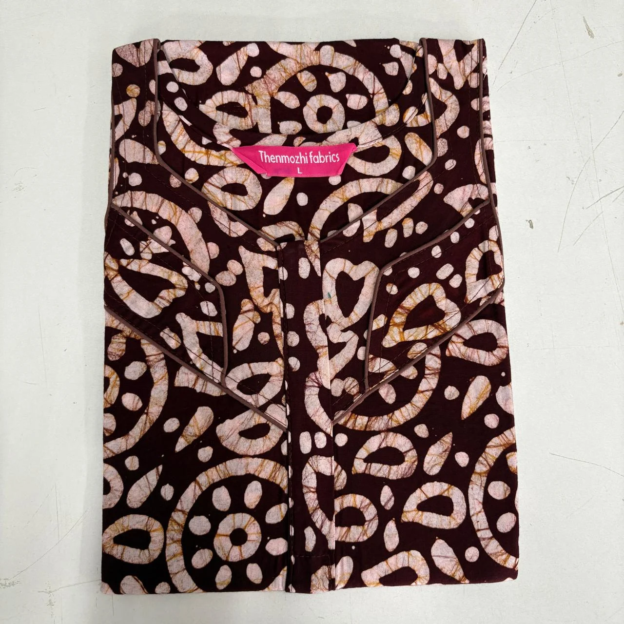 Enjoy peaceful nights and effortless style with our Batik Nighty (Size L) from Thenmozhi Fabrics.