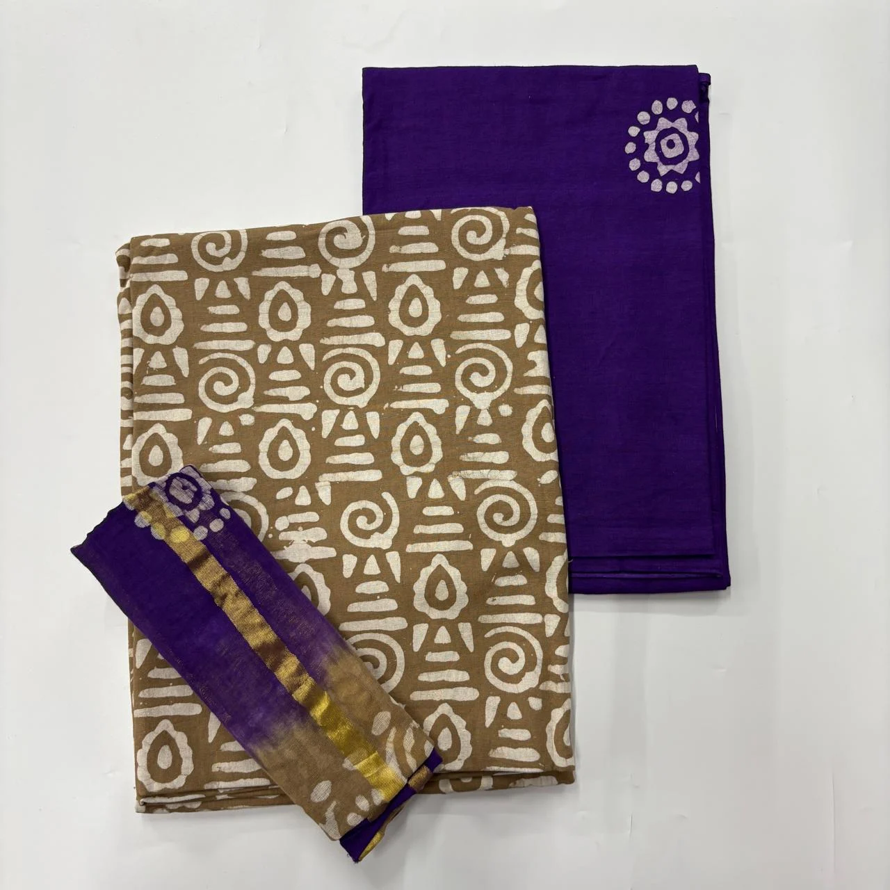 Beige & Purple Batik Cotton Salwar Material