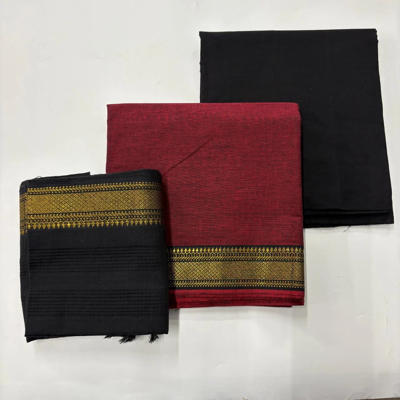 Black & Maroon Mangalagiri Cotton Salwar Material