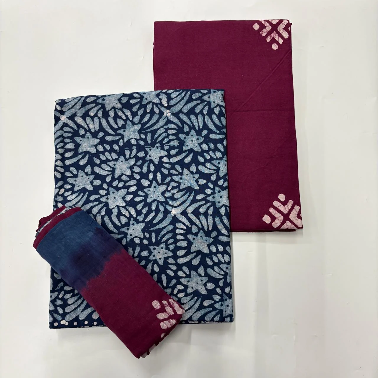 Blue & Wine Batik Cotton Salwar Material