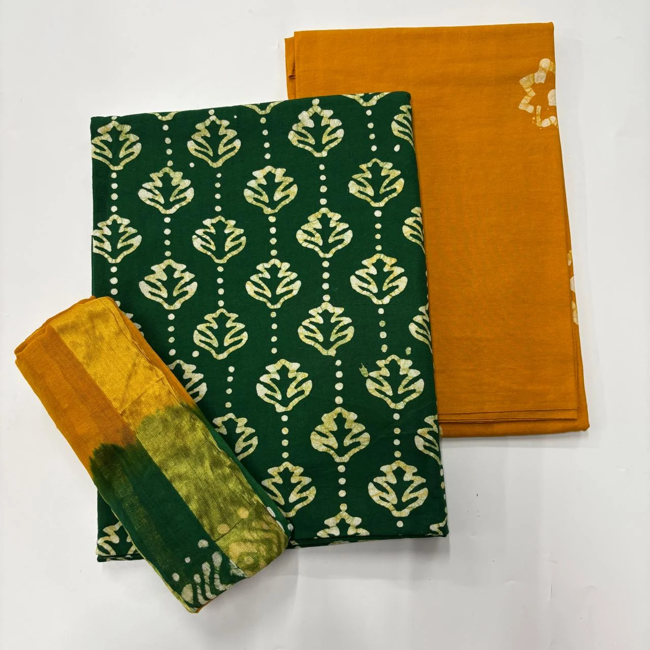 Bottle Green & Mustard Batik Cotton Salwar Material