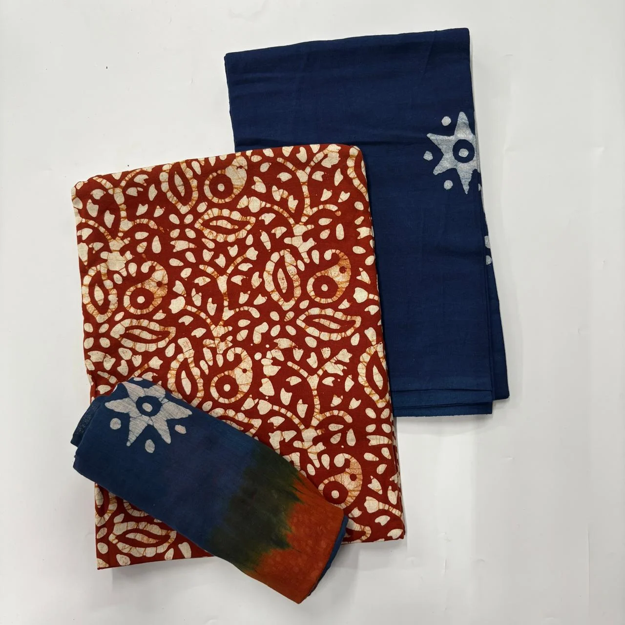 Brownish Red & Navy Blue Batik Cotton Salwar Material