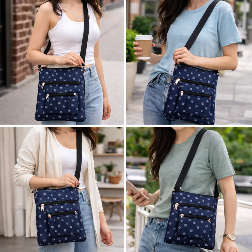 Add a touch of style with the 150 Rupees Denim Sling Bag, designed for comfort and practicality. Featuring four zip compartments and an adjustable strap, this lightweight crossbody bag keeps your essentials organized. Made with durable denim fabric in trendy prints.