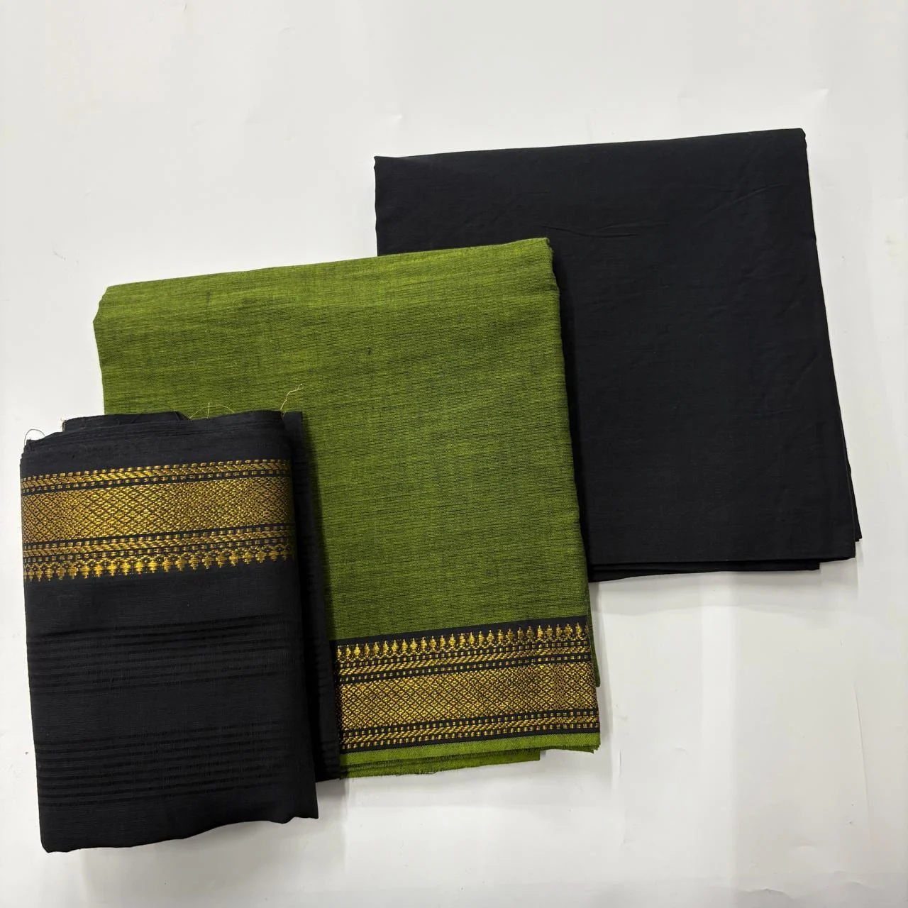 Green & Black Mangalagiri Cotton Salwar Material