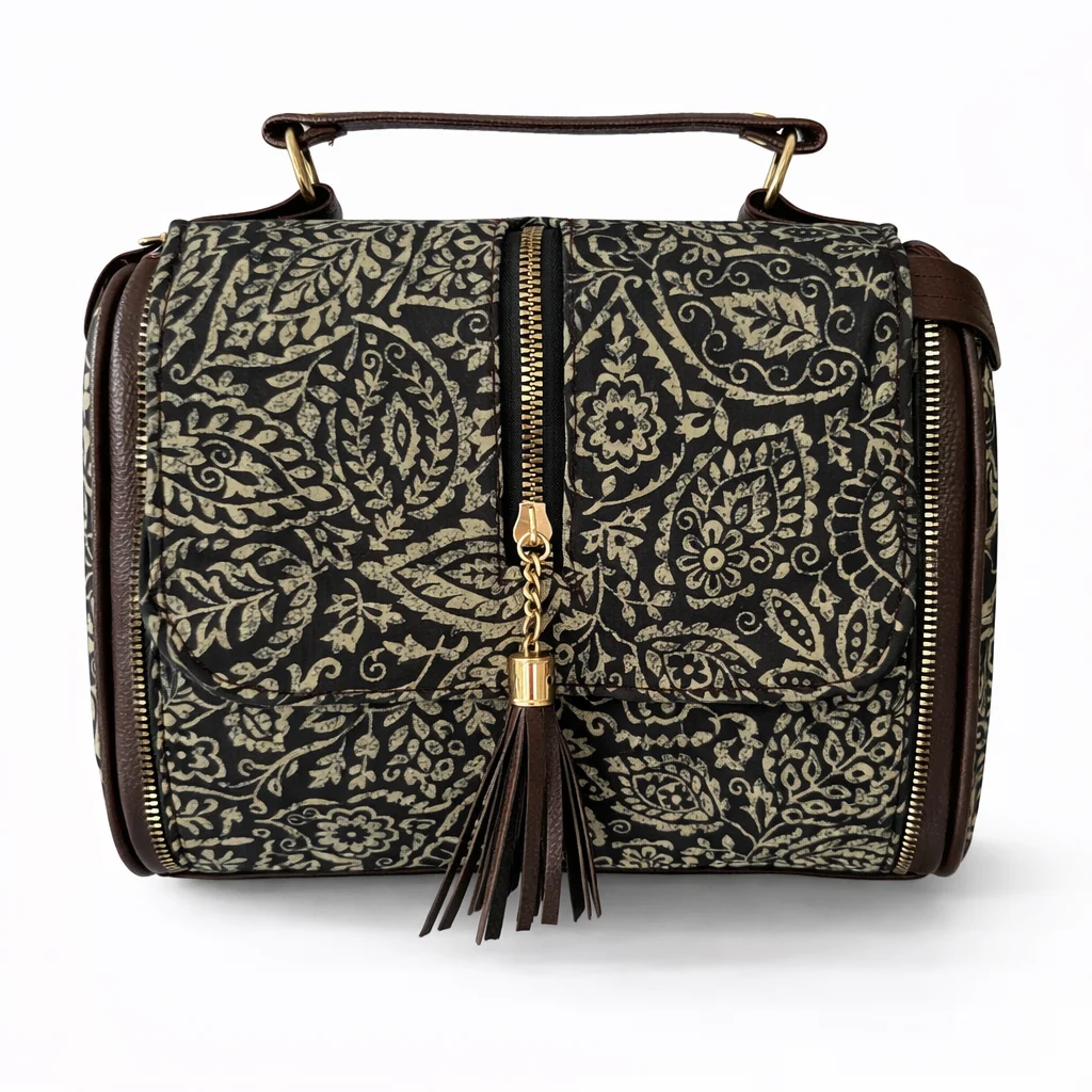 Upgrade your style with our kalamkari Sling Bag, crafted from rich cotton kalamkari fabric. Featuring premium zip closures, a tassel accent, and an adjustable strap, this handmade sling blends traditional art and modern utility. Perfect for travel, work, or daily use — lightweight, durable, and authentically Indian.