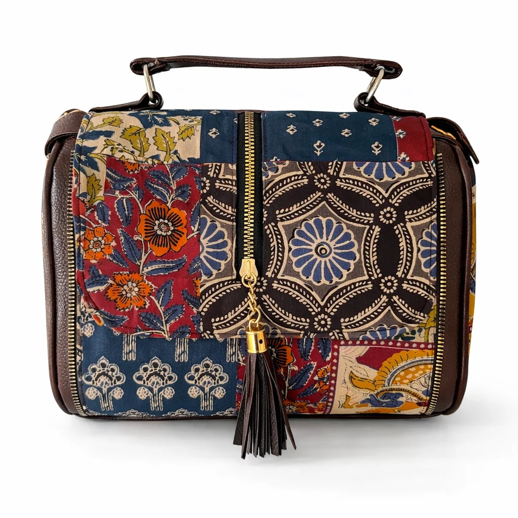 Upgrade your style with our kalamkari Sling Bag, crafted from rich cotton kalamkari fabric. Featuring premium zip closures, a tassel accent, and an adjustable strap, this handmade sling blends traditional art and modern utility. Perfect for travel, work, or daily use — lightweight, durable, and authentically Indian.