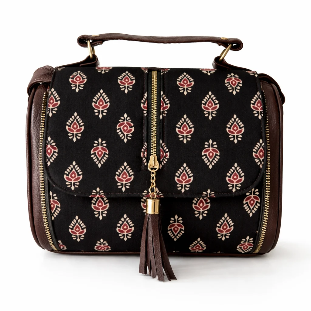 Upgrade your style with our kalamkari Sling Bag, crafted from rich cotton kalamkari fabric. Featuring premium zip closures, a tassel accent, and an adjustable strap, this handmade sling blends traditional art and modern utility. Perfect for travel, work, or daily use — lightweight, durable, and authentically Indian.