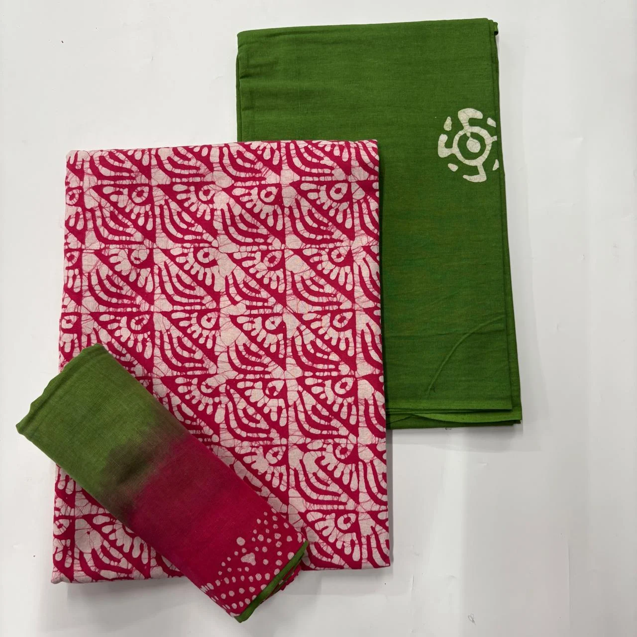 Pink & Green Batik Cotton Salwar Material