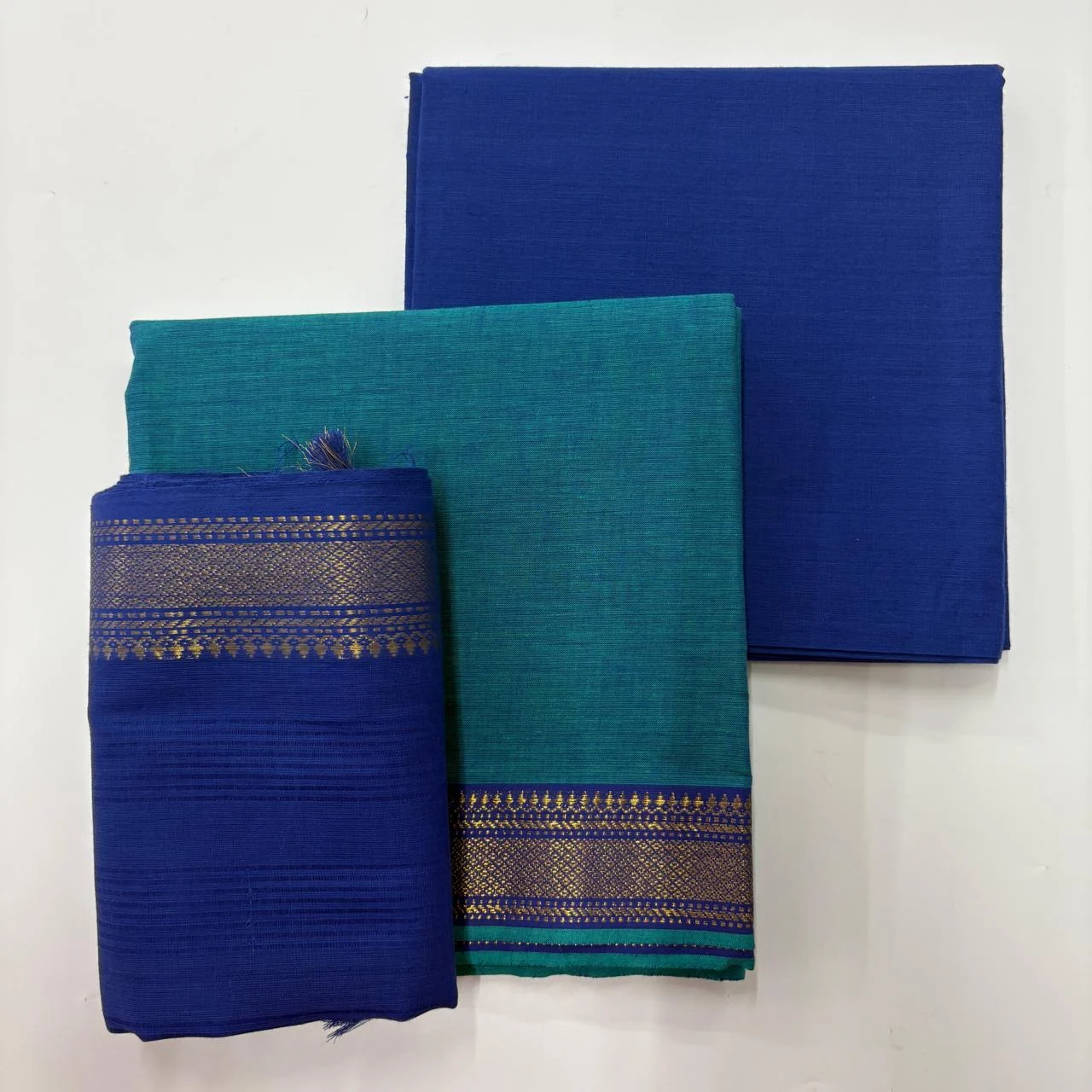 Royal Blue with Teal Green Mangalagiri Cotton Salwar Material