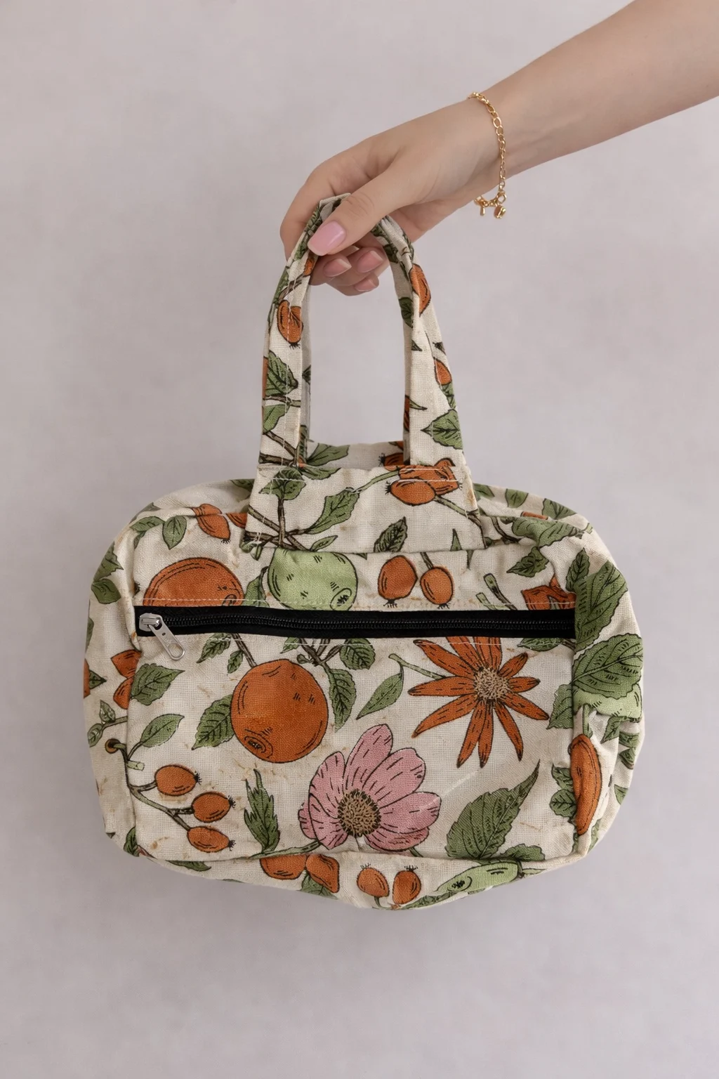 Two Zip Cotton Small Bag